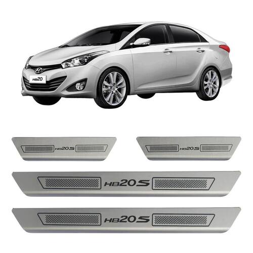 Kit soleira de porta aço inox escovado hb20s todos Soleira de porta em aço inox com acabamento em aço escovado. Proporciona uma área extra de preservação para a pintura de seu carro. Aumentando o cuidado contra riscos e arranhões, e ainda dando um estilo esportivo ao seu veículo. Kit de 4 soleiras para o hb20s 4 portas todos anos. Características: - feito em aço inox - modelo específico para o veículo - cor: prata e cinza - referência: sl054 - aplicação: autocolante fita inclusa Itens inclusos: - duas 2 soleiras grandes para a porta dianteira. - duas 2 soleiras pequenas para a porta traseira. Dimensões - comprimento: 45 cm maior / 20 cm menor - largura: 4,5 cm todos - espessura: 1 cm todos de 30 dias para defeitos de fabricação. Marca: Não Informado