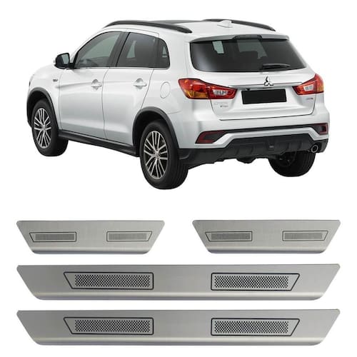 Kit soleira de porta aço inox escovado mitsubishi asx todos soleira de porta em aço inox com acabamento em aço escovado. Proporciona uma área extra de preservação para a pintura de seu carro. Aumentando o cuidado contra riscos e arranhões, e ainda dando um estilo esportivo ao seu veículo. Kit de 4 soleiras para o mitsubishi asx 4 portas todos os anos. Características: - feito em aço inox - modelo específico para o veículo - cor: prata e cinza - referência: sl111 - aplicação: autocolante fita inclusa