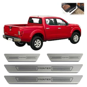 Kit soleira de porta aço inox escovado nissan frontier Soleira de porta em aço inox com acabamento em aço escovado. Proporciona uma área extra de preservação para a pintura de seu carro. Aumentando o cuidado contra riscos e arranhões, e ainda dando um estilo esportivo ao seu veículo.