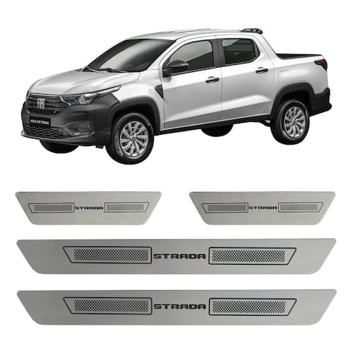 Kit soleira de porta aço inox escovado strada novo Soleira de porta em aço inox com acabamento em aço escovado. Proporciona uma área extra de preservação para a pintura de seu carro. Aumentando o cuidado contra riscos e arranhões, e ainda dando um estilo esportivo ao seu veículo. Kit de 4 soleiras para o strada 2021 a 2025 4 portas. Características: - feito em aço inox - modelo específico para o veículo - cor: prata e cinza - referência: sl173 - aplicação: autocolante fita inclusa Itens inclusos: - duas 2 soleiras grandes para a porta dianteira. - duas 2 soleiras pequenas para a porta traseira. Dimensões - comprimento: 45 cm maior / 20 cm menor - largura: 4,5 cm todos - espessura: 1 cm todos de 30 dias para defeitos de fabricação. Marca: Não Informado