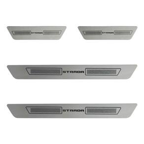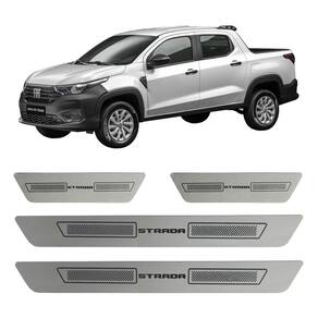 Kit soleira de porta aço inox escovado strada novo Soleira de porta em aço inox com acabamento em aço escovado. Proporciona uma área extra de preservação para a pintura de seu carro. Aumentando o cuidado contra riscos e arranhões, e ainda dando um estilo esportivo ao seu veículo. Kit de 4 soleiras para o strada 2021 a 2025 4 portas. Características: - feito em aço inox - modelo específico para o veículo - cor: prata e cinza - referência: sl173 - aplicação: autocolante fita inclusa Itens inclusos: - duas 2 soleiras grandes para a porta dianteira. - duas 2 soleiras pequenas para a porta traseira. Dimensões - comprimento: 45 cm maior / 20 cm menor - largura: 4,5 cm todos - espessura: 1 cm todos de 30 dias para defeitos de fabricação. Marca: Não Informado