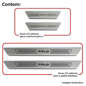 Kit soleira de porta aço inox escovado vw polo soleira de porta em aço inox com acabamento em aço escovado. Proporciona uma área extra de preservação para a pintura de seu carro. Aumentando o cuidado contra riscos e arranhões, e ainda dando um estilo esportivo ao seu veículo. Kit de 4 soleiras para o volkswagen polo 4 portas todos os anos. Características: - feito em aço inox - modelo específico para o veículo - cor: prata e cinza - referência: sl019 - aplicação: autocolante fita inclusa itens inclusos: - duas 2 soleiras grandes para a porta dianteira. - duas 2 soleiras pequenas para a porta traseira. Dimensões - comprimento: 45 cm maior / 20 cm menor - largura: 4,5 cm todos - espessura: 1 cm todos garantia garantia de 30 dias para defeitos de fabricação. Sobre o envio envio podendo ser feito até o próximo dia útil após confirmação de pagamento. em até 3 dias úteis, em caso de boleto política de troca sempre estamos interessados em sua satisfação. Caso não receba o produto exatamente como no anúncio, com algum defeito ou no transporte, você poderá trocar e devolver a qualquer momento, sem pressa, sem prazo e principalmente sem custos desde que o produto esteja sem uso e na mesma condição da data da compra . No caso de devolução por compra de tamanho errado, desistência ou mudança de intenção, neste caso o cliente deve arcar com o custo da devolução da mercadoria e nós arcamos com o custo de reenvio da mercadoria nova. Marca: Sofisti-Car