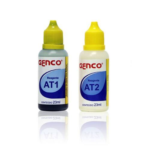 A soluções reagentes T1 e T2 de Alcalinidade Genco mede a alcalinidade total com resultados precisos e confiáveis de maneira rápida e simples. É extremamente importante que a Alcalinidade Total em águas de piscinas seja mantida entre 80 e 120 ppm dependendo do cloro utilizado , pois isso confere estabilidade ao pH e facilita seu controle, melhora a atuação dos produtos utilizados no tratamento e a qualidade da água. O teste da alcalinidade total deve ser feito pelo menos uma vez por semana. Validade: Reagente AT1: 2 anos após a data de fabricação. Reagente AT2: 2 anos após a data de fabricação. Instruções de Uso: 1 Enxágue a célula comparadora e o tubo transparente na própria água da piscina antes e depois de cada uso. 2 Recolha no tubo transparente 25 ml de água da piscina. 3 Adicione 3 gotas do reagente AT1 e agite para igualar a cor azul formada. 4 Adicione cuidadosamente o reagente AT2 na amostra, contando gota a gota, enquanto agita o tubo transparente sempre em círculos entre uma gota e outra para homogeneizar a mistura, até que a sua cor passe de azul para rosa ou amarelo. 5 O resultado do teste é igual ao número de gotas utilizadas multiplicado por 10. Exemplo: 12 gotas utilizadas: Alcalinidade Total = 12 x 10 = 120 ppm Itens Inclusos: 1 solução reagente alcalinidade T1 Genco 1 solução reagente alcalinidade T2 Genco