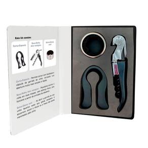 Kit Sommelier Corta-cápsula + Saca-rolha + Salva-Gotas Anel