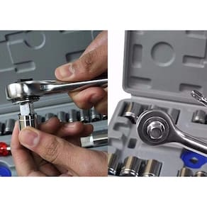 Marca: BESTFERCaracterísticas:Ótimo acabamento.Prático e de fácil manuseio.Para materiais como ferro, alumínio, plástico, resina e mais.Facilita o trabalho de rosca interna e externa em diversas medidas.Possui maleta para deixar suas ferramentas organizadas.Conteúdo:1 Chave catraca 1/4 (17 cm).1 Adaptador 3/8 x 21 mm.1 Adaptador 1/4 x 3/8 (5,4 cm).1 Chave suporte para bits 3/8 (14,1 cm).1 Disco de catraca 3/8.1 Prolongador 3/8 (6,7 cm).14 Soquetes 1/4 (4, 4,5, 5, 5,5, 6, 6,5, 7, 7,5, 8, 9, 10, 11, 12, 12 mm).14 Soquetes 3/4 (5/32, 3/16, 7/32, 1/4, 9/32, 5/16, 11/32, 3/8, 12/32, 7/16, 15/32, 1/2, 17/32, 9/16.3 Soquetes oitavados (1/4, 5/16, 3/8).2 Soquetes 3/8 (15, 16 mm).1 Maleta.Aplicação: Ideal para uso profissional e hobby que necessitam de rosca interna e externa em diversas medidas.