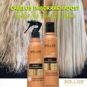 O Kit Bioplex Stop Action Anti-Quebra (Gel + Spray 300 ml cada) é um tratamento reconstrutor rápido e eficaz da Salles Profissional. Formulado com tecnologia exclusiva de vitaminas, ele promove restauração profunda da estrutura capilar, interrompendo a quebra em até 5 minutos e deixando os fios mais fortes e resistentes.
