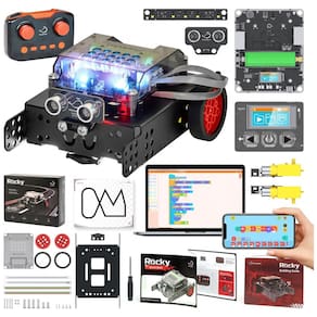 O WhalesBot Rocky Smart Robot Car Bundle é um kit completo de robótica educacional que une carro robô programável e acessório de câmera FPV, permitindo dirigir, programar e enxergar o mundo em primeira pessoa pelo robô. Com modos de Controle Remoto, Automático, Coding e DIY, o Rocky oferece uma experiência prática de engenharia e programação, ideal para quem quer ir além de um simples carrinho de controle remoto.
