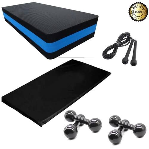 Kit step + corda + halter de 2 e 4 kg + colchonete O step aérobico de e.V.A. 60x28x10cm - tem como função absorver o impacto durante atividades aeróbicas. Além de ser resistente e possuir um material de grande durabilidade, sua plataforma superior antiderrapante evita acidentes durante os exercícios. O material eva etil vinil acetato tem a propriedade de retornar ao formato inicial, depois de submetido a deformações. Ações e benefícios - absorve impacto durante atividades específicas. - fácil higienização. - leve e fácil de transportar. - facilidade de armazenamento. Indicações Exercícios aeróbicos. Fortalecimento de membros inferiores. Apoio para alongamento. Apoio para posicionamento específicos em determinados exercícios. Condicionamento físico. Barreira para treinamentos em circuito. Dados técnicos Material: eva Dimensões: 60x28x10cm cxlxe Peso 3 kg : 03 meses Itens inclusos 01 step de e.V.A. 60cm x 28cm x 10cm 1 corda em pvc 1 colchonete 90x45x2cm 1 par de halter emborrachado 2 kg 1 par de halter emborrachado 4 kg