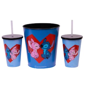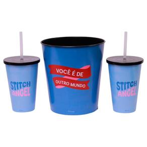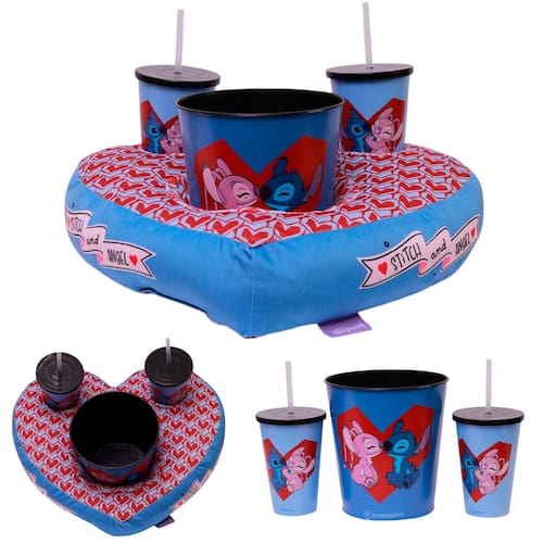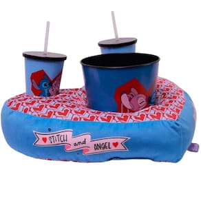 Kit Stitch And Angel Almofada Suede Coração Balde Pipoca + 2 Copos Oficial Disney!