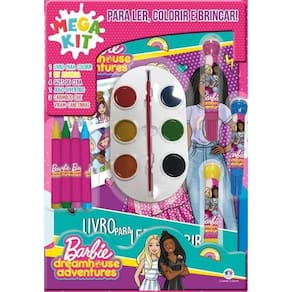 O Megakit Para Ler, Colorir E Brincar - Barbie é perfeito para a diversão das crianças. Com os personagens favoritos da garotada, esse kit é cheio de cores e aventuras. Com ele, as crianças podem se divertir e soltar a imaginação com um livro para ler e colorir, gizes de cera, uma paleta de aquarela com seis cores, canetinhas com carimbos acoplados e um jogo para recortar e brincar.