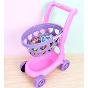 - 1 carrinho de compras montável com cestinha a cestinha sai do carrinho
