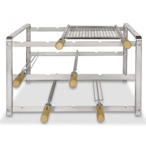 Kit Suporte 1005 Inox Giragrill - 110 Descrição Do Produto - Todos Os Espetos Que Acompanham O Produto Possuem Engrenagens Para Que Possam Ser Colocados Nos Apoios Em Até 17 Posições - Espetos E Grelha Com Cabos Em Madeira Marfim - Armação Do Kit Em Formato Pórtico Para Evitar Sua Exposição Direta Sobre O Calor Da Brasa Modelos Sem Este Recurso Têm Vida Útil Mais Curta - Possui 3 Níveis De Altura: Todos Com Apoio Multiponto - Possui Sistema Multiponto, Que Possibilita O Apoio Do Espeto Em 17 Posições Diferentes - Possui Trava Para Fixar O Kit À Base De Alvenaria - Acompanha Manual De Montagem E Uso Do Produto Características Do Produto - Medidas Do Braseiro Sugestão : L 58,5 X P 39,0 X A 22,0 Cm - Medidas Do Produto Sem Espetos : L 62,5 X P 49,0 X A 37,0 Cm - Medidas Da Embalagem: C 100,0 X L 63,6 X A 39,6 Cm codigo de barras: 7896569202145 codigo: 8638644