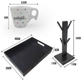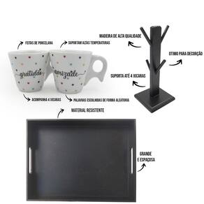 Kit suporte 4 xicaras expresso bandeja cantinho do café frases espaço