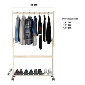 - Altura entre o cabideiro e a prateleira mais alta: 117cm