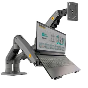 Kit Suporte Articulado de Mesa para 2 Monitores de 17" a 34" com Pistão a Gás NB-F160 + Bandeja de Apoio para Notebook NBH-1