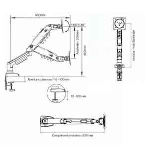 Kit suporte articulado pistão a gás f80 nb + bandeja nbh-2 - modelo: nb-f80-nbh2 Este kit é formado pelos produtos: suporte pistão a gás nb-f80 e a bandeja para notebook nbh-2. Permitindo toda a versatilidade do suporte nb-f80 com sua movimentação ajustada para uso com notebook. Suporte articulado com pistão a gás nb-f80 O suporte nb-f80 já vem pré-montado e é fabricado em alumínio injetado e polímero de alta resistência. Possui capas plásticas para passagem e organização dos cabos que também acompanha ao kit do produto. Estrutura para fixação do suporte tanto em borda de mesas, quanto sobre a mesa com parafuso. Suas articulações permitem ajustes leves e precisos. Com este suporte você poderá fazer as seguintes movimentações: aproximar, afastar, levantar, abaixar e movimentar lateralmente. É necessário ajustar a força do pistão a gás para sustentar notebooks de diferentes pesos. Fixação do suporte Existem duas opções para fixar o suporte nb-f80 morsa e parafuso e estão inclusas no kit de acessórios que acompanham o produto. Bandeja de apoio para notebook nbh-2 Esta bandeja de apoio que se acopla ao suporte articulado para monitor. Acompanha parafusos para fixar a bandeja ao suporte vesa 75x75 e 100x100mm. Acompanha travas laterais ajustáveis e emborrachadas para fixação do notebook. Largura máxima do notebook: 42cm Largura mínima do notebook: 24cm Fora destes limites o note não vai encaixar sobre as travas da bandeja. Peso da bandeja vazia: 1,4kg Peso máximo do notebook: 4,5kg Apoios frontais com 2cm de altura na posição elevada ou 1cm na posição dobrada. Recomendações importantes para instalar e usar Travar a inclinação vertical do suporte antes de instalar o notebook e usar o conjunto sempre com as travas laterais ajustadas ao notebook. Atenção Notebook e itens da foto decorativa não acompanham o produto suporte nb-f80 + bandeja nbh-2 são apenas ilustrativos da aplicação de uso . Características gerais do produto: Padrão vesa mm : 75x75; 100x100 Com pistão a gás: sim Tamanho da tela: de 11 a 17 Modo de fixação: morsa / parafuso Peso suportado: de 2 à 7kg Local de instalação: mesa Cor do suporte: preto Acompanha o produto: 1 suporte braço duplo f80 nb 1 bandeja de apoio nbh-2 Parafusos para fixação do monitor / suporte Parafusos para fixar a bandeja ao suporte vesa 75x75mm Manual de instruções / certificado de : 1 ano junto ao fabricante Marca: Não Informado
