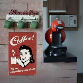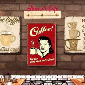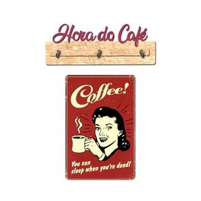 Kit porta xícaras de parede hora do café - linha premium e placa decorativa coffee vintage