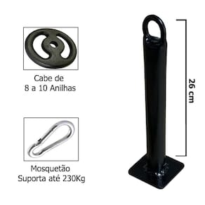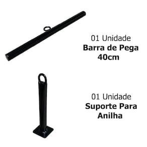 01 suporte para anilha 01 barra de pega 40cm 01 mosquetão 8cm - suporta 230kg