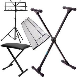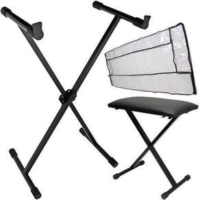 Kit Suporte Para Teclado + Cobertura + Banqueta + Partitura Kit Suporte Para Teclado + Cobertura + Banqueta + Partitura A BT 10 da Saty é completa e ideal para piano ou teclado, pois possui até 3 estágios de regulagem. Pode atingir altura máxima de 53 cm e conta com capacidade máxima de 90 kg.