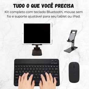 Kit suporte premium + teclado mouse para lenovo tab m10 plus Cor: preto cansada de digitar direto na tela ou usar o tablet com pouca ergonomia Este kit é a solução perfeita para transformar seu tablet ou em uma verdadeira estação de trabalho teclado e mouse bluetooth de conexão rápida e estável, você garante produtividade com conforto. As teclas são macias e silenciosas, e o mouse oferece precisão no clique. O suporte universal dobrável é leve, resistente e ajustável - ideal para usar em casa, no trabalho ou em viagens. tudo funciona via bluetooth, sem cabos basta ligar os dispositivos, ativar o modo pareamento fn + c no teclado e conectar ao seu tablet ou . Reconhecidos como bluetooth keyboard e bluetooth mouse, você emparelha em segundos e aproveita a liberdade de trabalhar, estudar ou assistir com muito mais conforto. adquira agora seu kit completo e leve mais praticidade, ergonomia e produtividade para o seu dia a dia. Compatível com ipads, tablets android, windows e muito mais ------------------ ------------------ o teclado e o mouse funcionam é universal R: sim o kit é compatível com ipads, tablets android, windows e qualquer dispositivo com bluetooth. precisa de aplicativo ou cabo para usar R: não basta ligar o teclado e o mouse, ativar o bluetooth do seu dispositivo e conectar. É simples, rápido e sem fios. como faço para conectar o teclado e o mouse Ligue o botão on no teclado e no mouse. - no teclado, pressione fn + c para ativar o modo pareamento. - no seu dispositivo, ative o bluetooth e conecte aos nomes bluetooth keyboard e bluetooth mouse. o suporte é ajustável R: sim o suporte é dobrável e permite diferentes ângulos para oferecer mais conforto ao assistir, digitar ou fazer chamadas de vídeo. funciona com celular também R: sim, desde que o celular tenha bluetooth e suporte a dispositivos de entrada como teclado e mouse . Ideal para produtividade e praticidade ------------------ Especificações ------------------ Teclado bluetooth: Conexão: bluetooth 3.0 ou superior Alcance: até 10 metros Teclas: silenciosas e macias Ativação do bluetooth: fn + c Alimentação: via cabo usb cabo incluso Compatibilidade: ios, android, windows, ipados Mouse bluetooth: Conexão: bluetooth Botão liga/desliga na parte inferior Reconhecido como: bluetooth mouse Design ergonômico e leve Alimentação: bateria recarregável Compatibilidade: ios, android, windows, macos Suporte universal: Material: plástico resistente + base antiderrapante Dobrável e portátil Ângulo ajustável Compatível com tablets, ipads e celulares Ideal para uso em mesa, escritório, estudo ou lazer ------------------ Conteúdo ------------------ 1x teclado bluetooth 1x mouse bluetooth 1x suporte universal dobrável 1x cabo usb para recarga 1x manual de instruções Anúncio referente a teclado + mouse + suporte universal Acessórios que ambientam as fotos não inclusos. ------------------ Apresentação: ------------------ - qualidade garantida. - atendimento qualificado. - enviamos para todo o brasil. - compra garantida. - despachamos em até 1 dia útil após confirmação do pagamento Garantimos a devolução por arrependimento em até 7 dias, após o recebimento e de 15 dias contra defeitos de fabricação. Homologação Anatel: 079902113999