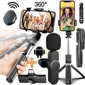 Kit suporte smartphone tripé iluminador profissional + microfone sem fio duplo gravar vídeo no celular selfie entrevista Kit completo profissional para gravação de vídeos Ring light led 10 polegadas 3 cores e 10 níveis de intensidade + tripé com ajuste de altura até 2,10 metros Rotação 360 graus que permite gravações na vertical e horizontal Microfone de lapela 2 em 1, duplo, sem fio de alta qualidade, sistema plug and play, fácil instalação e qualidade profissional Itens inclusos: 1x ring light 26cm led usb 1x adaptador ball head 360o 1x suporte flexível para celular 1x tripé e estabilizador 1x controle remoto bluetooth 1x tripé de 2,10 metros 2x microfones de lapela sem fio 1x lightning usb tipo-c Ring light led 26cm Desenvolvido para maquiadores, fotógrafos, youtubers, blogueiras que buscam uma ótima maneira de iluminar com perfeição. Controle de temperatura da luz; ajuste de ângulo com suporte articulado Diâmetro: 26 cm 10 pol 120 leds; 3 modos de iluminação Potência 20w max 1000lm Temperatura da cor: 3200 - 5600 Alimentação: 5v usb O cabo usb deverá estar conectado para funcionar Tripé com altura ajustável até 2.10 metros. Leve e compacto quando fechado pode ser guardado e transportado facilmente. Possui 3 seções e 3 travas, que proporcionam ao usuário uma regulagem na altura, de forma que possibilite criar diversos modos de uso. Microfone lapela duplo sem fio usb tipo-c Microfone sem fio duplo, 2 em 1, de alta qualidade, tipo-c para smartphones android entre outros com entrada de microfone tipo-c. Sistema plug and play, fácil instalação e qualidade profissional. Omni-direcional Voz clara e ótima captação Captação 360 graus Longo alcance 20-30 metros Sistema plug-and-play Bateria com até 5h de duração Espuma protetora Clipe para prender na roupa Características do 3 em 1 , tripé e estabilizador de celular. Faça vídeos na horizontal paisagem ou na vertical retrato com ajuste de inclinação. Controle incorporado ao e que também pode ser removido, para usar a distância Material: aço inoxidável Abertura do encaixe do telefone: 87mm Peso: 135g Tamanho fechado: 18cm Tamanho estendido: 70cm Controle remoto bluetooth Utiliza bateria cr1632 já incluída Importante: Imagens ilustrativas Seu pedido será postado em até 24 horas úteis após confirmação de pagamento Marca: Não Informado