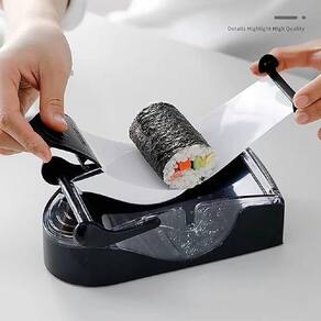 Como Funciona: Corte a folha de alga no tamanho correto e coloque na máquina. Adicione o arroz e os ingredientes de sua preferência. Feche as laterais, dê um puxão e pronto ? seu sushi está preparado!