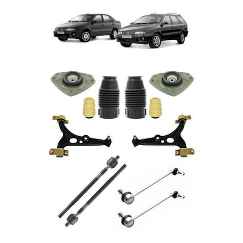 Kit suspensão bandeja bieleta axial kit amortecedor marea Qualykits Há 10 anos nossa empresa distribui no para as melhores lojas de auto peças. -------------------------------------------------------------------- Fiat marea todos modelos / brava todos modelos -------------------------------------------------------------------- Kit suspensão bandeja, kit de amortecedor dianteiro, axial, bieletas. -------------------------------------------------------------------- Contém: 02 - batente dianteiro 02 - coifa dianteira guarda pó 02 - coxim do amortecedor dianteiro 02 - axiais 02 - bieletas 02 - bandejas esq/dir -------------------------------------------------------------------- : 03 meses após aplicação -------------------------------------------------------------------- Verifique se o modelo do seu carro e compatível com esta aplicação. Obrigado pela preferência Marca: Não Informado