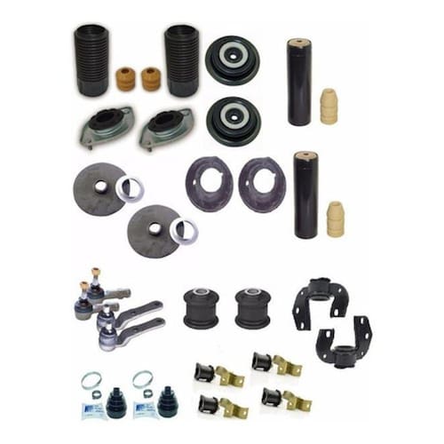 Kit suspensão dianteira traseira corsa celta 2000 2001 2002 Conteúdo: - 2 pivo - 2 terminal ponteira direção - 2 buchas bandejas balanças dianteira - 2 coifa homocinetica - 2 mocego - 4 kit buchas da barra estabilizadora com abraçadeiras - 2 coxim do amortecedor dianteiro - 2 batente dos amortecedores dianteiro - 2 coifa guarda po dos amortecedores dianteiro - 2 prato com rolamento de peso das molas dianteira - 2 calços inferior das molas dianteira Kit traseiro - 2 calço superior das molas traseira - 2 calço inferior das molas traseira - 2 batente dos amortecedores traseiro - 2 coifa guarda po dos amortecedores traseiro Aplicação: Corsa 1.0 1.4 1.6 2000 em diante todos exceto novo corsa frente montana - classic 1.0 1.4 2002 ate 2009 todos - celta 1.0 1.4 2001 ate 2009 todos Referencia: Kit pecas Marca: Garantia: 3 meses com a bull distribuidora Sobre a empresa: a bull distribuidora de auto peças é uma conceituada empresa no ramo de peças automotivas, fruto da união de empresários do ramo de auto peças. Trabalhamos com peças nacionais e importadas. Marca: Qualykits