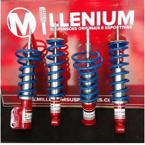 Millenium amortecedores. Os amortecedores são de ótima qualidade com uma ótima durabilidade. de 6 messes... Descrição do produto: 04 - amortecedores preparados para rosca slim -6 cm 04 - molas novas preparadas para roscas slim 04 - Tubo e flange slim galvanizados para não enferrujar/ Roscas grossa 04 - Prato superior de PU Marca: Não Informado