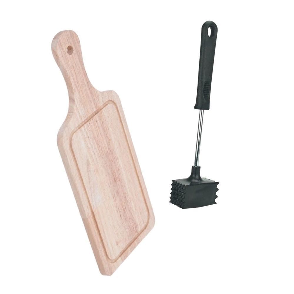 Kit Tábua Madeira Aperitivos + Martelo De Carne Amaciador