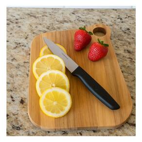 - Faca de legumes 5” com lâmina afiada e durável - Produzido em madeira Tauari de alta qualidade - Tábua resistente de 28x19 cm, prática para uso diário - Acabamento lixado, proporcionando toque suave e fácil limpeza - Design ergonômico e seguro para manuseio