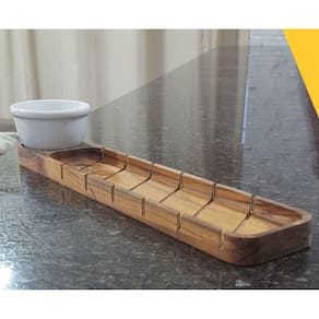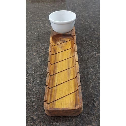 Bandeja de apoio Teca: 2cm altura x 8cm largura x 39cm comprimento