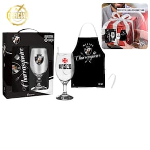 Kit Taça 330ml Vinho Cerveja+ Avental Poliéster Cozinha Mestre Churrasqueiro Time Vasco Oficial Detalhes Com a família ou com os amigos, o avental do Vasco, com estampa do Vascão é ideal para os apaixonados, na cozinha ou preparando o churrasco com a galera. Feita em poliéster, a peça traz design na cor preta destonada, além de trazer o escudo do time estampado na região frontal.