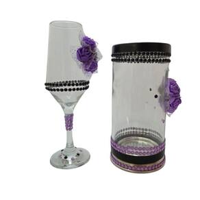 Kit Taça e Porta Vela Maria Mulambo Rosas Vidro Kit Taça e Porta Vela Maria Mulambo Rosas Vidro