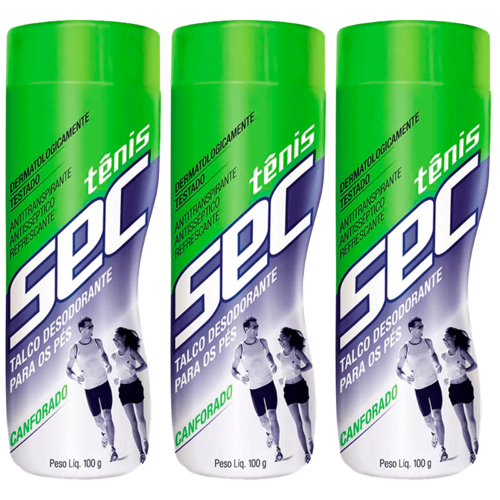 O Talco Tênis Sec Canforado possui fórmula exclusiva de fácil aplicação, desenvolvida para manter os pés secos e perfumados. Proporciona conforto, praticidade, protege contra a transpiração e os odores causados pelos materiais sintéticos dos calçados. Mantém os pés secos, perfumados e com suave sensação de frescor.