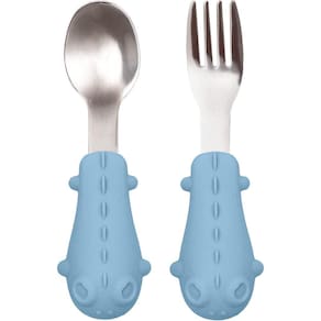 O Kit Talheres coelhinho da Buba é super-resistente e higiênico. Possui um garfo e uma colher com cabo macio em silicone e personagem divertido.