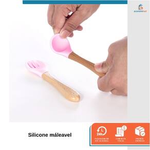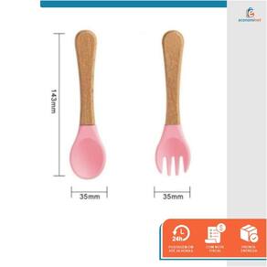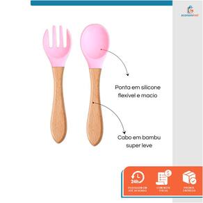 Kit Talheres Bambu Silicone Colher + Garfo Refeição Bebê Rosa