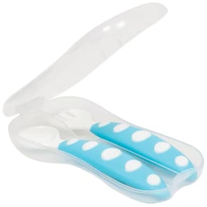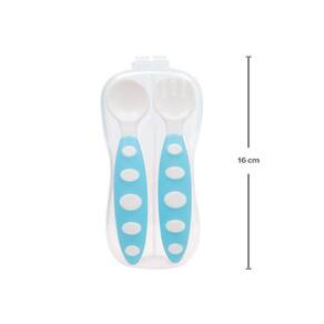 Possui formato anatômico com bordas suaves que não machucam a boquinha da criança, tamanho ideal e case para armazenar possibilitando levar os talheres para passeios e viagens.