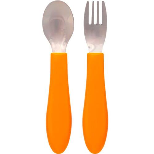 Kit Talheres Inox e Cabo Silicone Leãozinho Laranja 16973 - Buba - Dorémi Brinquedos