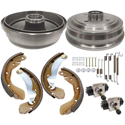 Conteúdo : 02 - tambores de freio traseiro panela/campana 02 - cilindros de roda 01 - jogo de sapatas com lona 01 - jogo de molas de fixação