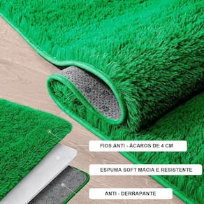 Kit Tapete Banheiro Felpudo Peludo Verde 40 X 60 Cm