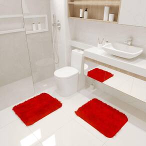 Kit Tapete Banheiro Felpudo Peludo Vermelho 40 X 60 Cm
