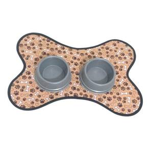 Kit de Tapete Pet, comedouro e bebedouro - Ossinho dupla face Lindo tapetinho, comedouro e bebedouro para os Pets cheios de estilo. Tapetinho para usar embaixo do pratinho de ração e água, para manter tudo limpinho, organizado e ainda decorar o seu cantinho. Possui um excelente acabamento e um belo design, que torna a refeição do animal mais prática e higiênica. Tapete dupla face, feito com tecido 100% gorgurinho, com acabamento em viés, lavável e super prático. Comedouro e bebedouro na cor cinza. Medidas aproximadas: tapete 22 cm x 16 cm, comedouro 300 ml, bebedouro 300 ml Cor: Marrom. Seu Pet vai adorar Ideal para Pets de pequeno e médio porte. Marca: Nica pet