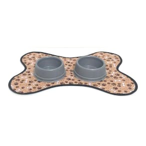 Kit Tapete Comedouro/Bebedouro - Marrom E Cinza