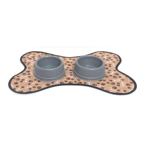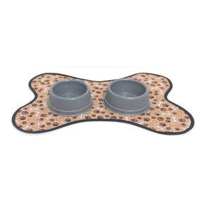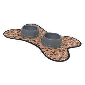 Kit de Tapete Pet, comedouro e bebedouro - Ossinho dupla face Lindo tapetinho, comedouro e bebedouro para os Pets cheios de estilo. Tapetinho para usar embaixo do pratinho de ração e água, para manter tudo limpinho, organizado e ainda decorar o seu cantinho. Possui um excelente acabamento e um belo design, que torna a refeição do animal mais prática e higiênica. Tapete dupla face, feito com tecido 100% gorgurinho, com acabamento em viés, lavável e super prático. Comedouro e bebedouro na cor cinza. Medidas aproximadas: tapete 22 cm x 16 cm, comedouro 300 ml, bebedouro 300 ml Cor: Marrom. Seu Pet vai adorar Ideal para Pets de pequeno e médio porte. Marca: Não Informado
