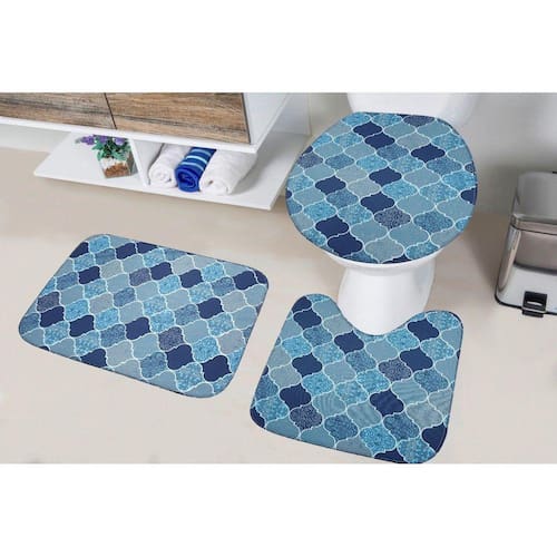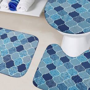Kit Tapete de Banheiro Tecil Pop 3 Peças Turquia Azul