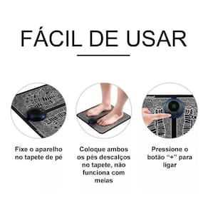 Kit Tapete E Mini Massageador Elétrico Dor Pés E Musculares Kit Tapete Massageador E Mini Massageador Elétrico é a solução perfeita para quem busca conforto e alívio de dores musculares no final do dia. Com sua tecnologia de estimulação elétrica,Você receberá:1 tapete1 mini massageador2 cabo USBEspecificações técnicas:-8 modalidades-19 intensidades-Desliga automaticamente após 30 segundos sem contato com os pés-Voltagem: 3,7V-Saída máxima: 98maA-Frequência: 1-100HzBateria de polímero de lítio Marca: Shopbr