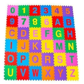 Tapete em eva com as letras e números, ajudando no desenvolvimento e raciocínio da criança.