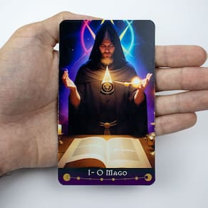 Explore a sabedoria mística das bruxas com este poderoso Tarô das Bruxas, que traz os 22 Arcanos Maiores em cartas plastificadas de alta qualidade, ideais para garantir durabilidade e facilidade de aplicação.