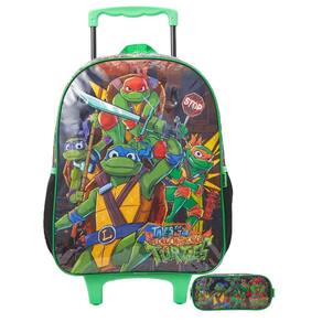 Mochila de rodinha: Confeccionada em poliéster Possui a frente em pvc estampada Rodinhas em gel Bolso lateral para garrafa Alça carrinho regulavél